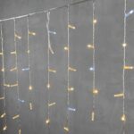Гирлянда бахрома длиной 4,9 м с колпачками и тёплым белым светом. 273 диода, эффект мягкого мерцания, защита IP65. Уличное применение. Прозрачный провод ПВХ — почти невидим на фасаде. Подключение приобретается отдельно.