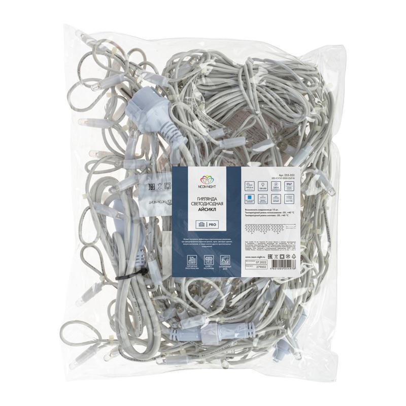 В конструкции гирлянды — 128 светодиодов, равномерно распределённых по 32 нитям. Высота каждой нити — до 60 см, что обеспечивает плотное вертикальное заполнение. Свет равномерно ложится по всей длине и высоте, без «провалов» и тёмных зон. Такая конфигурация подойдёт как для частных, так и для коммерческих объектов, в том числе с небольшой высотой фасада.