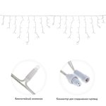 На концах гирлянды расположены соединители, позволяющие объединить до 15 штук в одну линию — до 60 метров непрерывной подсветки. Это удобно при оформлении длинных фасадов, периметров участков, торговых точек или кафе. Подключение к сети осуществляется через силовой шнур (не входит в комплект) — его длина подбирается отдельно.