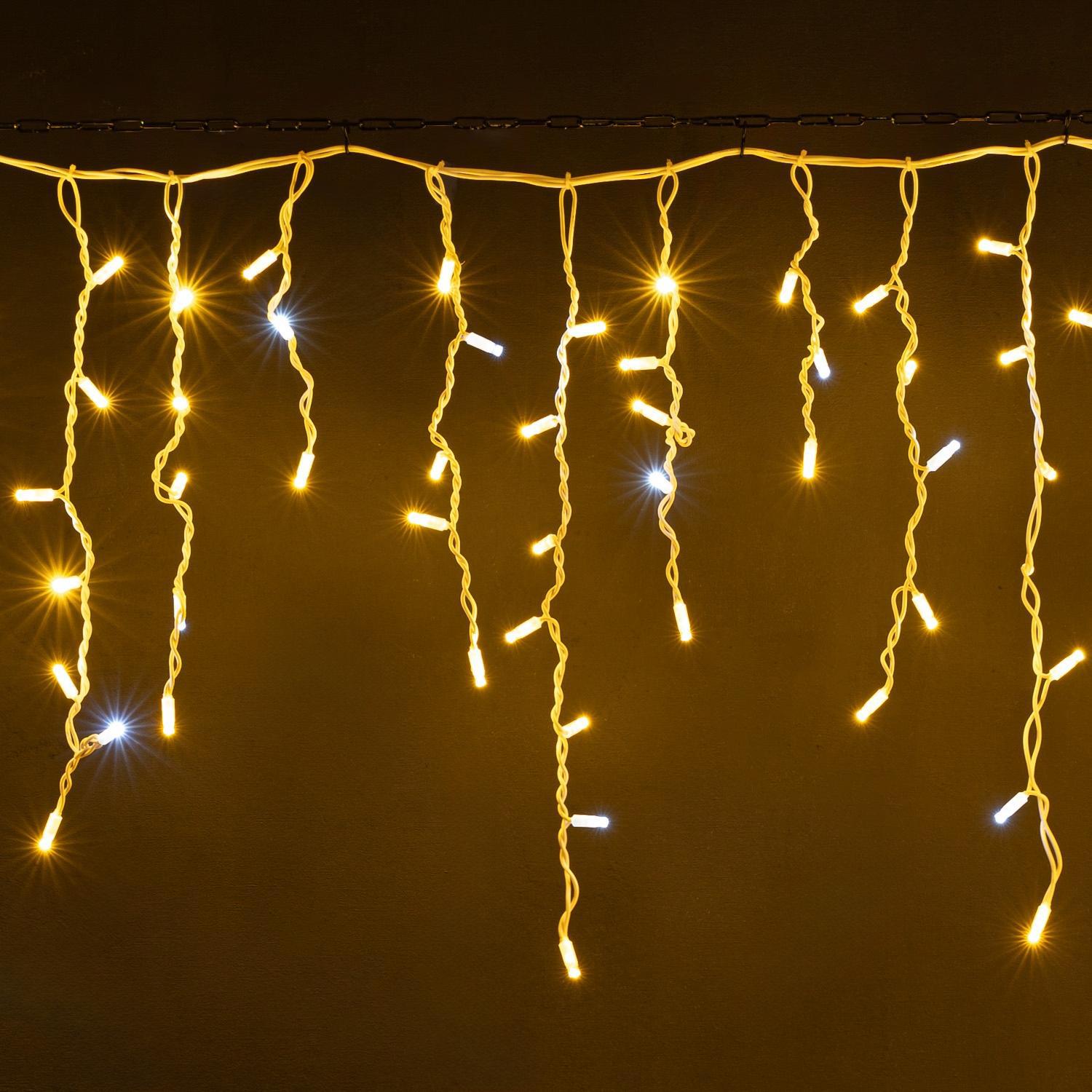 Гирлянда Бахрома 5 м Тёплый Белый с Мерцанием, Белый Провод, IP65, 260 LED
