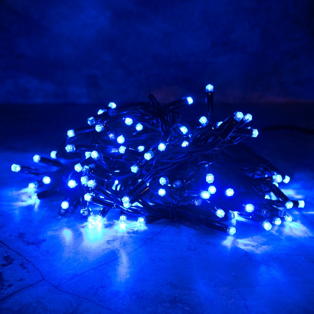 Каждый седьмой светодиод мигает — создаётся лёгкий, ненавязчивый эффект «живого света». В темноте это привлекает внимание, но не утомляет взгляд. Синие мерцающие гирлянды часто используют в премиум-посёлках, на объектах со стеклянными навесами, резиденциях и бутиках.
