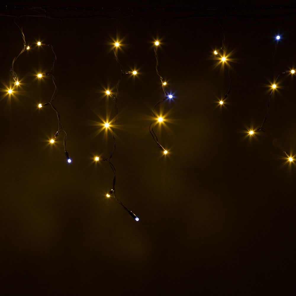 Гирлянда светит в тёплом белом спектре (около 3000 К) — это мягкое, уютное свечение, которое не раздражает глаза и идеально подходит для оформления жилых фасадов. Эффект мерцания создаётся за счёт специальных светодиодов, равномерно встроенных в гирлянду — примерно каждый седьмой LED. Это придаёт подсветке «живость» и визуальную динамику, не утомляя взгляд.