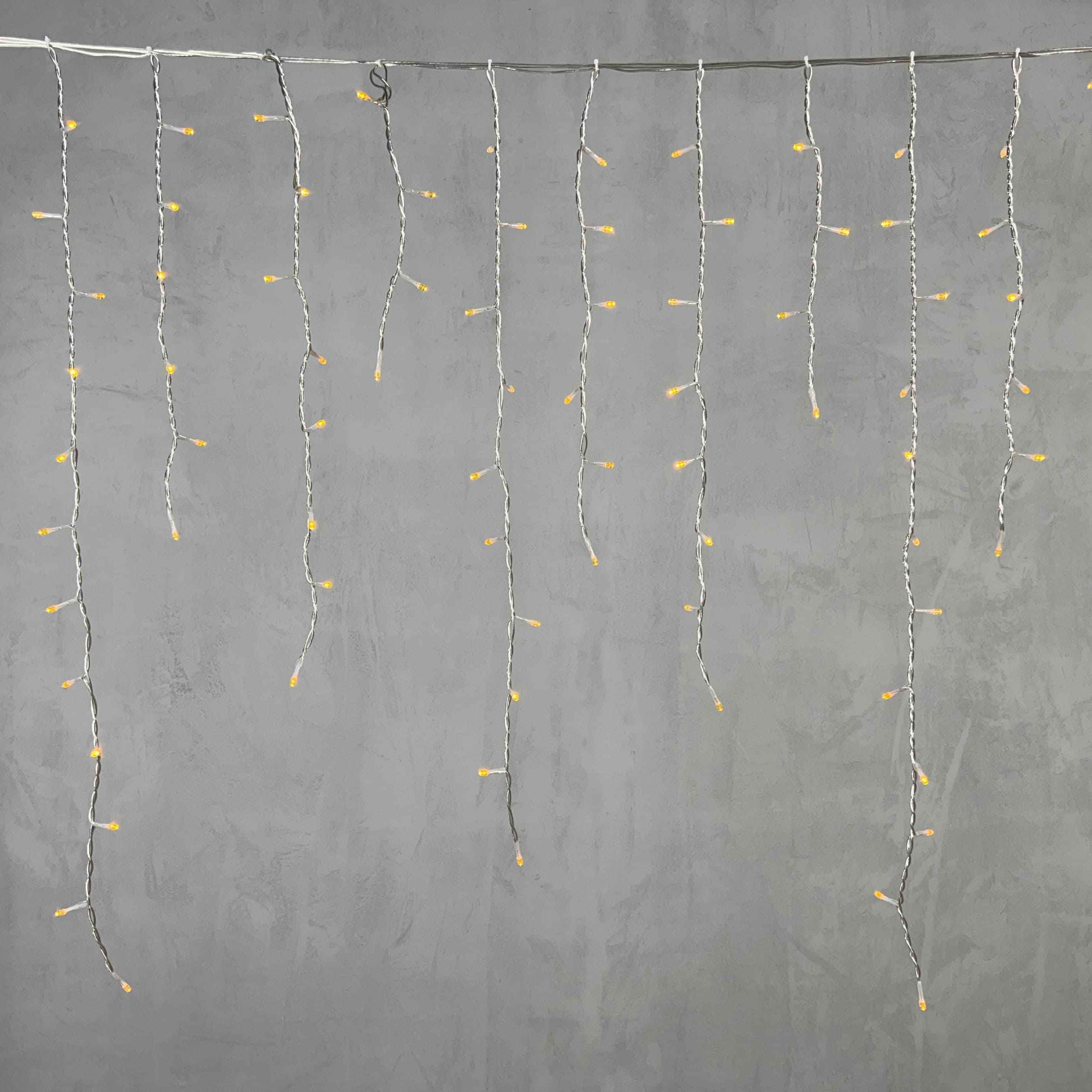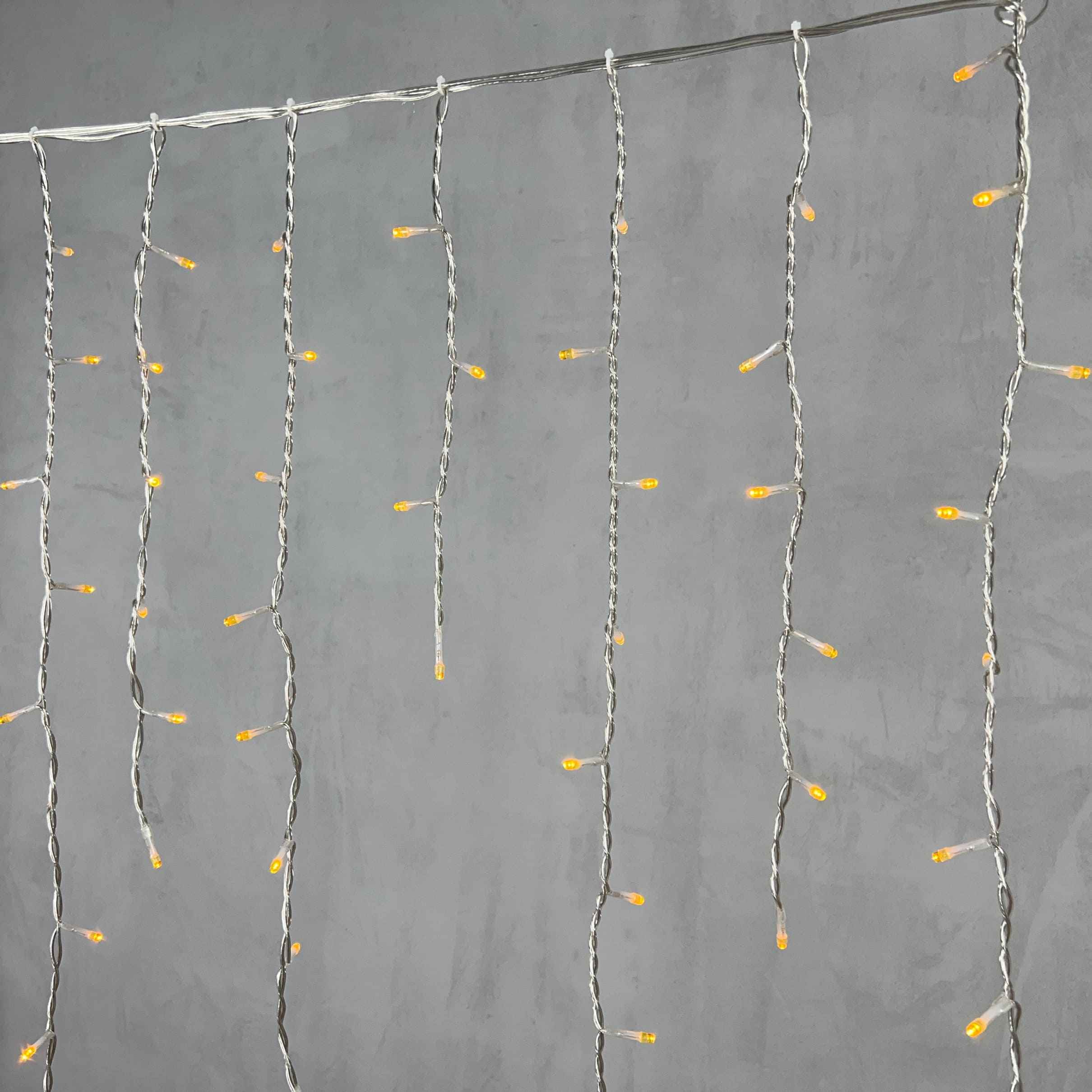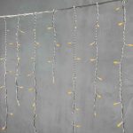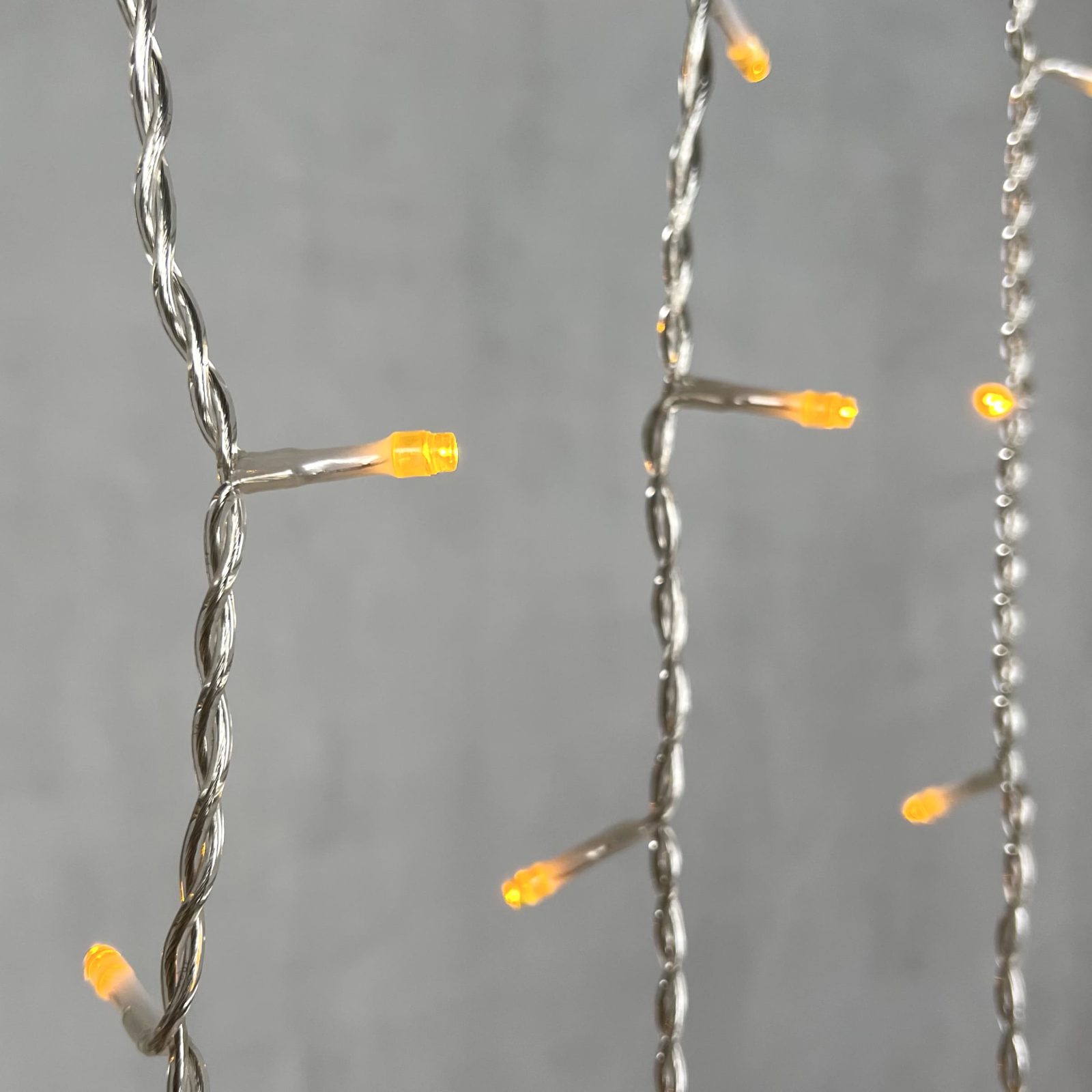 Светодиодная гирлянда-бахрома длиной 5 метров. Жёлтый тёплый свет, 348 LED, прозрачный силиконовый провод, защита IP65. Для уличного монтажа, устойчивость к морозу и влаге.