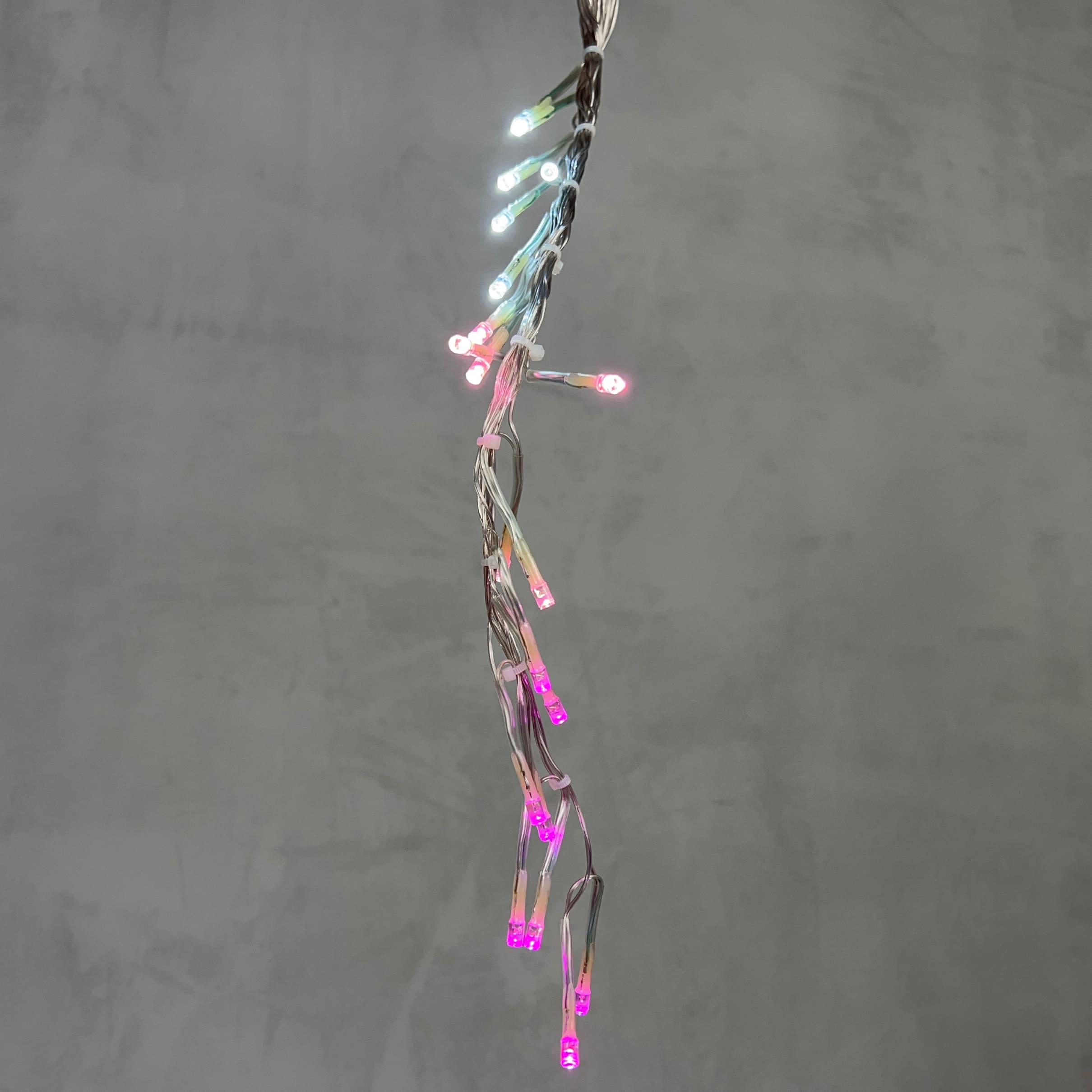 Если вы хотите добавить в оформление нотки нежности и яркости одновременно — бело-розовая гирлянда с бегущим огнём станет идеальным выбором. Сочетание тёплого белого и акцентного розового даёт мягкое, но эффектное свечение. Оно подойдёт как для зимнего оформления фасада, так и для оформления кафе, фотозон, террас, беседок, витрин. Динамика светодиодов придаёт гирлянде "живой" характер — подсветка словно оживает на глазах.