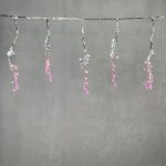 Уличная гирлянда-бахрома с эффектом бегущего огня, 1,75 м длиной и 0,4 м высотой. 320 бело-розовых светодиодов, 8 режимов свечения, безопасное питание 24 В, защита IP65, прозрачный силиконовый провод. Готова к подключению.