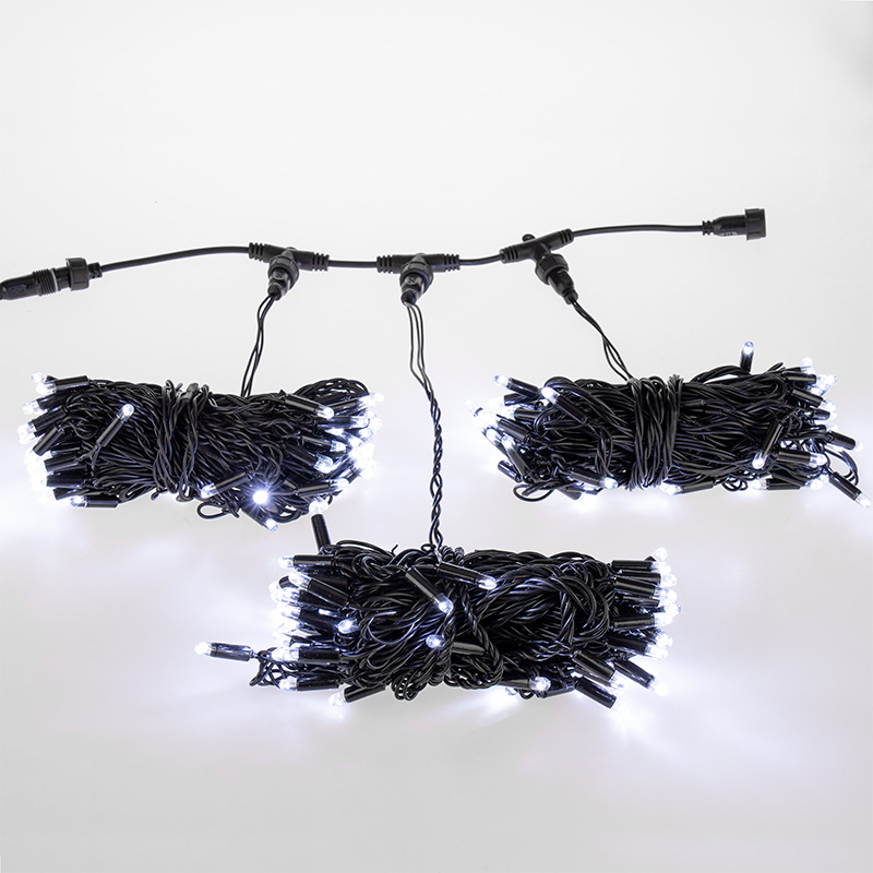 Гирлянда Клип Лайт Спайдер, комплект 3 белых нити статика по 10 м, 24 В, 198 LED, провод чёрный ПВХ, IP65