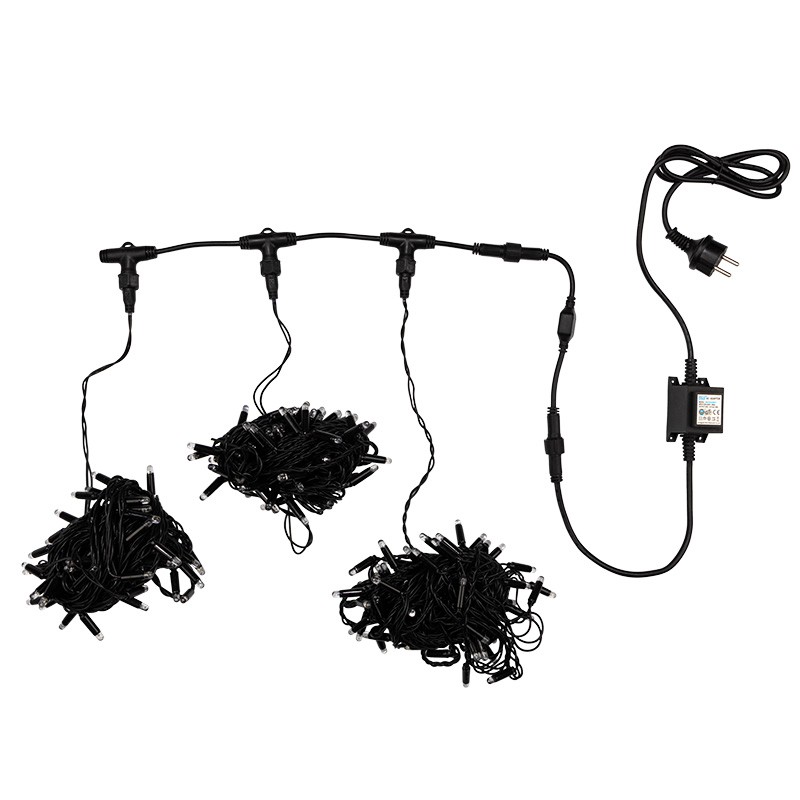 Гирлянда Клип Лайт Спайдер, комплект 3 мультиколор нити статика по 10 м, 24 В, 198 LED, провод чёрный ПВХ, IP65
