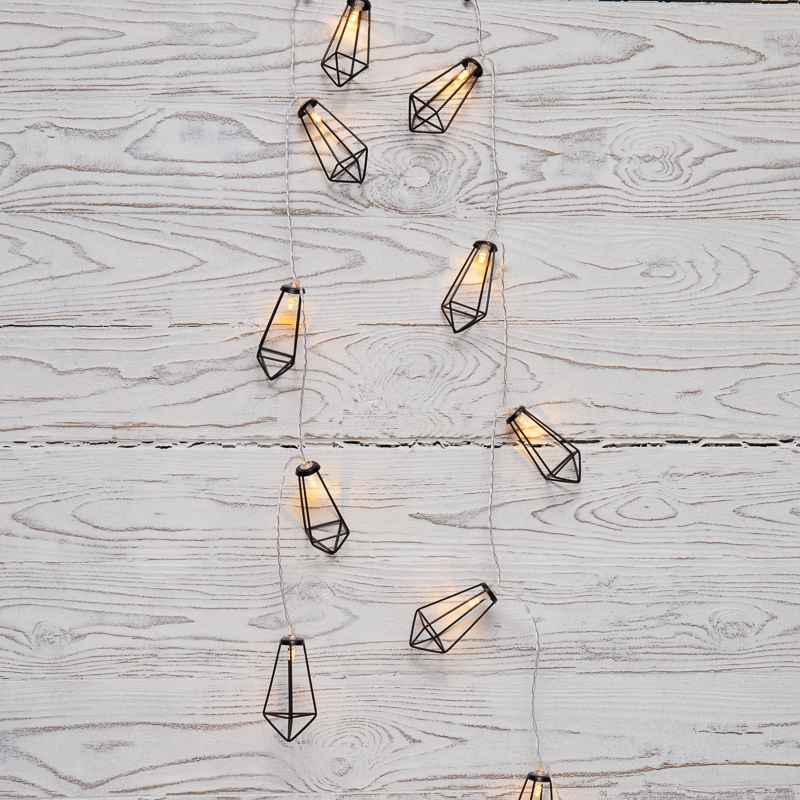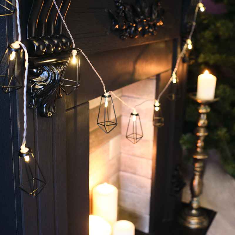 Чёрные декоративные элементы делают гирлянду универсальной: она подойдёт как для классического декора, так и для современных интерьеров, где важна чёткая визуальная линия и игра света.