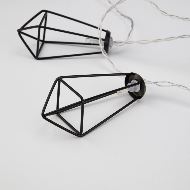 Главная особенность этой гирлянды — декоративные тёмные элементы, которые собирают свет и делают композицию более выразительной. В отличие от прозрачных украшений, чёрные «кристаллы» создают акцент и больше подходят для тех, кто ценит современный стиль, минимализм или контрастные интерьерные решения.