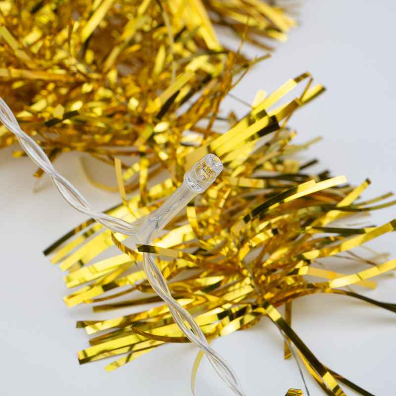 Купить гирлянду «Мишура Золотистая» 1,5 м, тепло-белый статика, 10 LED, провод прозрачный ПВХ, IP20 в интернет-магазине компании Joyled в Москве.