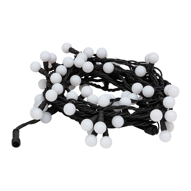 Эта гирлянда серии PROFESSIONAL подойдёт тем, кто хочет выделить участок, фасад или ландшафт без лишнего монтажа и настройки. 80 ярких RGB-светодиодов встроены в сферические рассеиватели диаметром 23 мм, которые дают мягкий, но насыщенный свет с динамичной сменой оттенков.