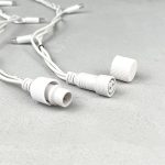 Гирлянда соединяется в цепочку до 6 штук, что даёт возможность покрывать большие объекты единым контуром. В комплекте нет стартового подключения — оно приобретается отдельно, в зависимости от задачи.