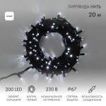 Гирлянда Нить 20 м Белая с Мерцанием, 230 В, 200 LED, Провод Чёрный Каучук, IP67