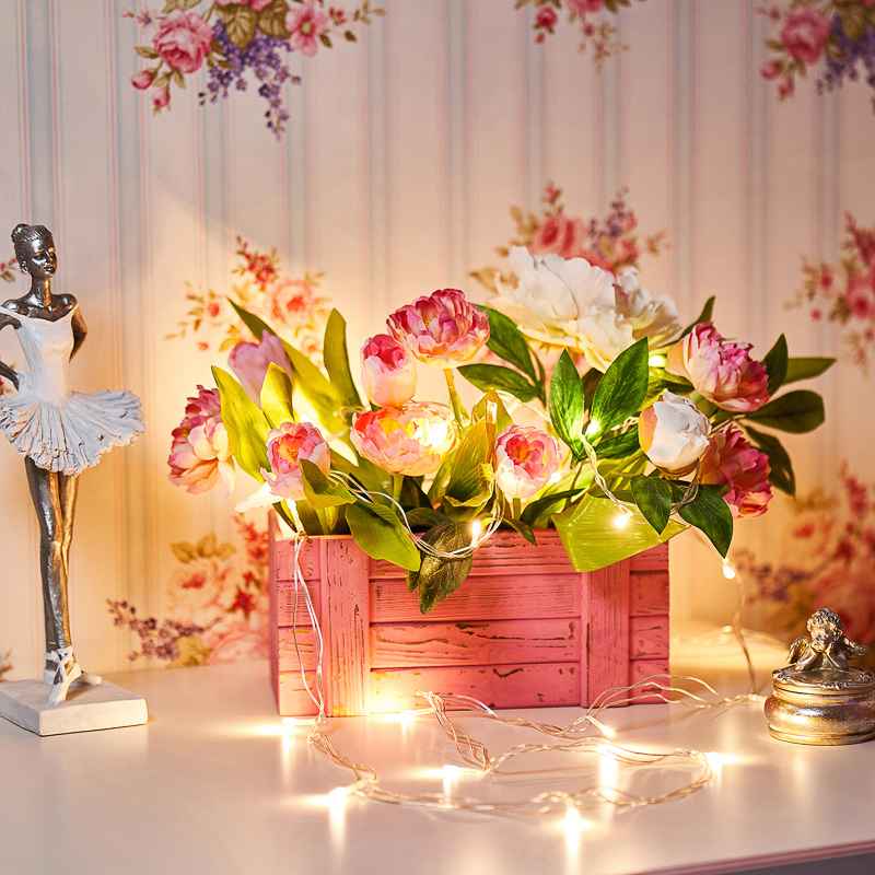 Гибкий провод и лёгкий вес позволяют закрепить гирлянду даже на тонких ветках или декоративных элементах без специального крепежа.