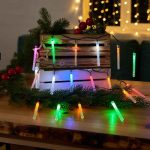 Главное преимущество — форма светодиодных насадок. Палочки дают направленное, вытянутое свечение, за счёт чего композиция выглядит интересней и технологичней. Такой свет подходит для современных интерьеров и добавляет праздничности без излишней перегруженности.