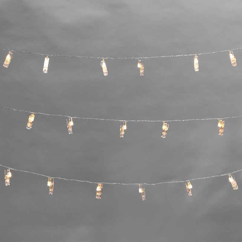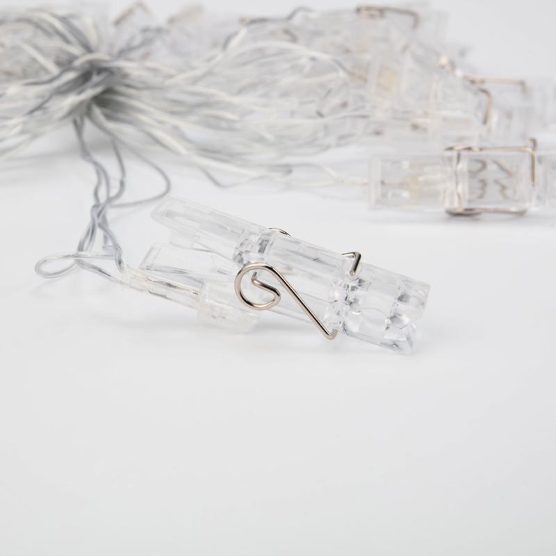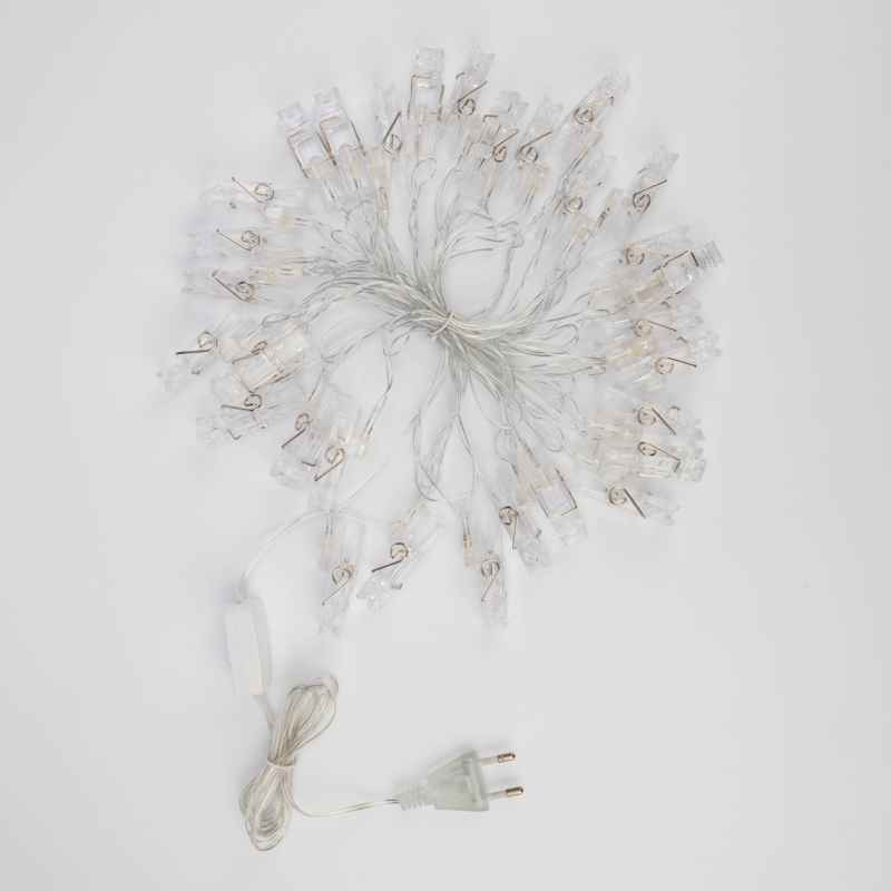 Купить Гирлянда Прищепки 5м, Тепло-Белый с постоянным свечением, 230В, 30 LED, Провод Прозрачный ПВХ, IP20 в интернет-магазине компании Joyled в Москве.