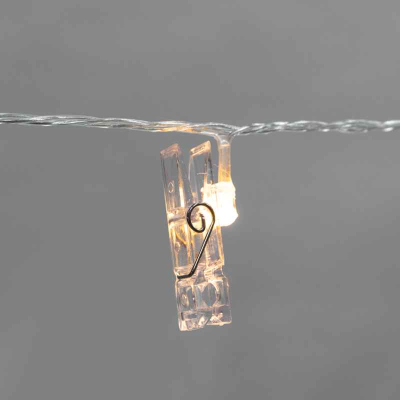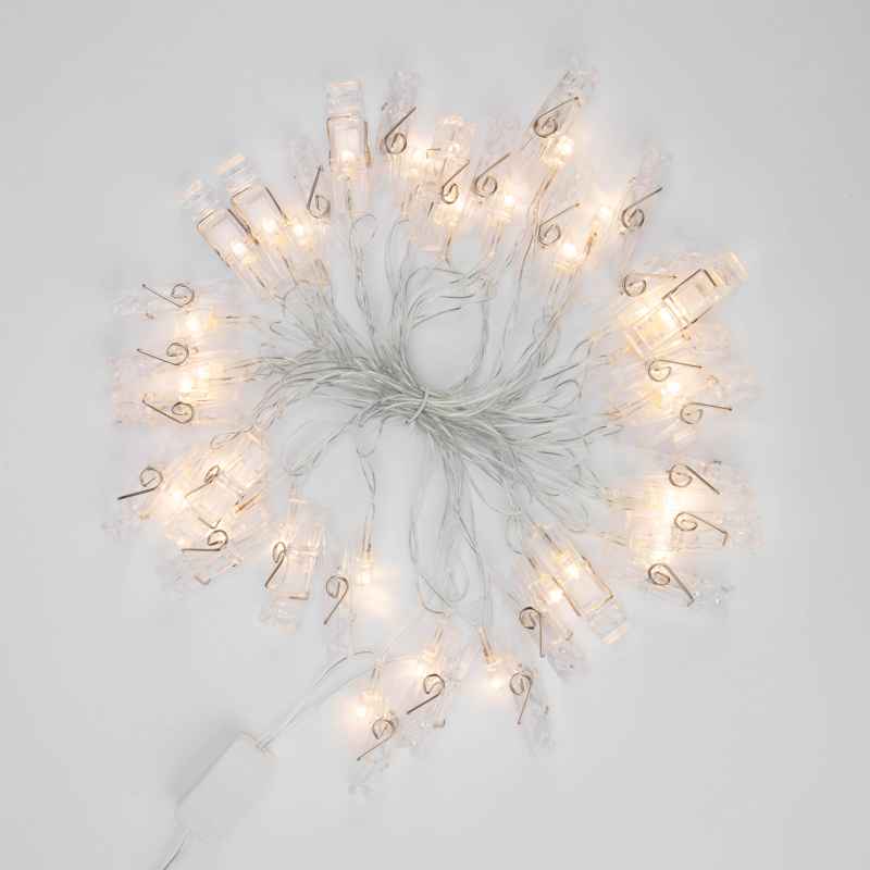 Гирлянда Прищепки 5м, тепло-белый статика, 30 LED, провод прозрачный ПВХ, IP20
