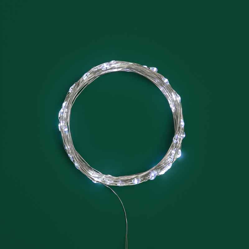 Гирлянда Роса 10 м Белая — это изящный элемент светового декора, который создаёт ощущение чистоты, свежести и простора. Белый свет придаёт помещению лёгкость и подчёркивает детали интерьера, а тонкий серебристый провод практически незаметен и создаёт эффект парящих в воздухе точек.