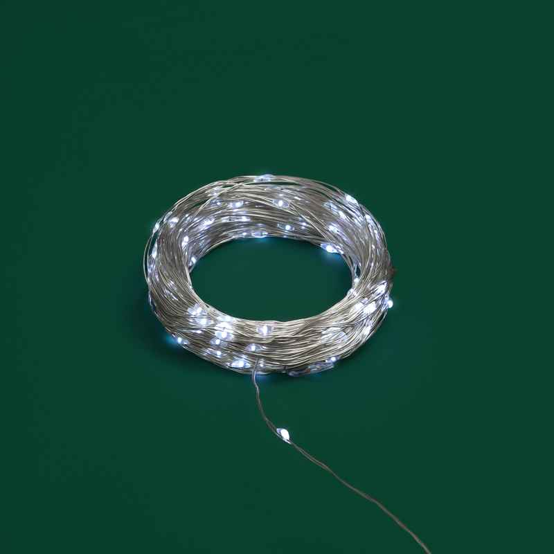 Гирлянда Роса 20 м Белая Статика, 200 LED, Серебристый Металл, IP44, NN