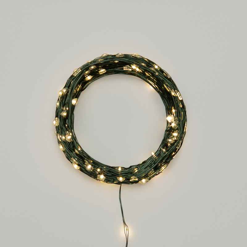 Гирлянда «Роса» — это не просто свет. Это тонкие искры уюта, которыми вы можете окутать любую новогоднюю композицию. 200 диодов на 20 метрах — идеальная плотность, чтобы ёлка, венок или даже окно заиграли мягким и тёплым светом. А тонкий тёмно-зелёный металлический провод почти незаметен среди веток — создаётся эффект, будто свет повис в воздухе.