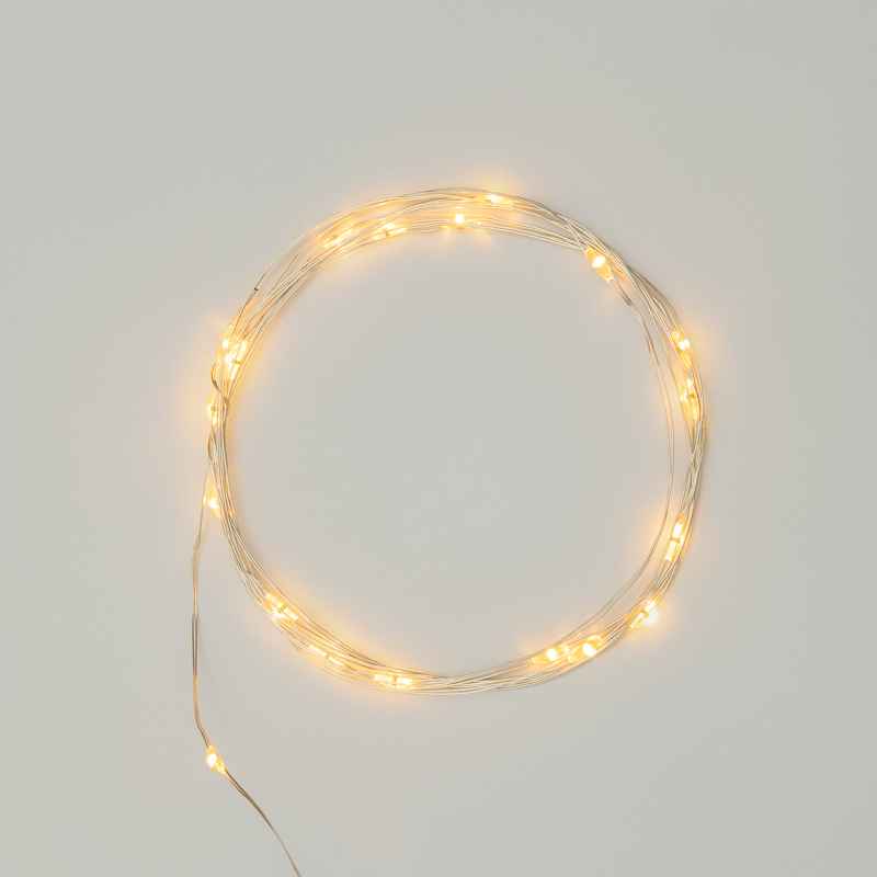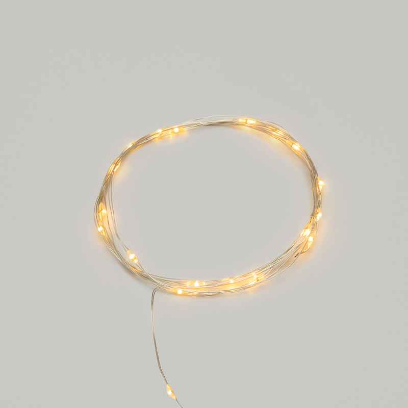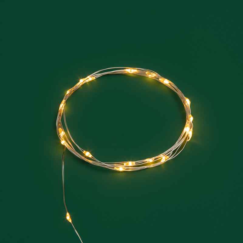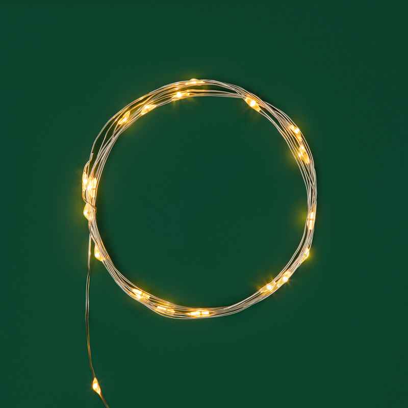 Компактная гирлянда «Роса» длиной 2 м с 20 жёлтыми светодиодами создаёт тёплую и уютную атмосферу. Гибкий серебристый провод почти незаметен, а питание от батареек позволяет разместить гирлянду где угодно без подключения к сети.