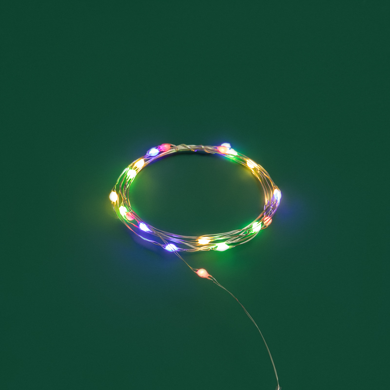 Гирлянда Роса с крупными каплями 2 м Мультиколор Статика, 20 LED, Серебристый металл, IP20, NN