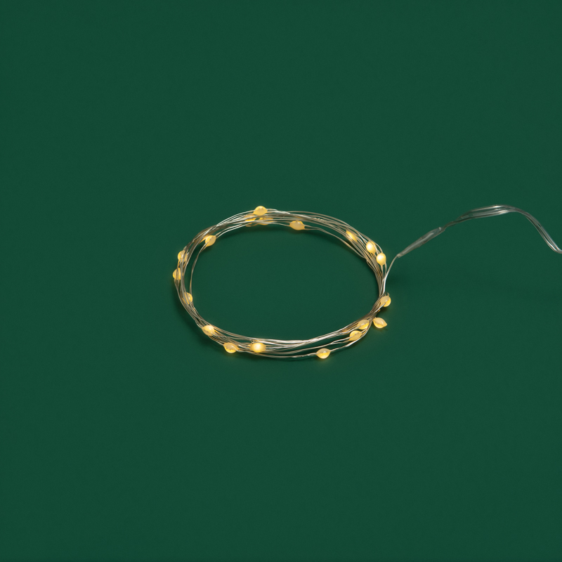Гибкий серебристый провод принимает любую форму, что упрощает фиксацию на любых поверхностях. Он практически незаметен, поэтому в темноте кажется, будто светящиеся капли парят в воздухе.
