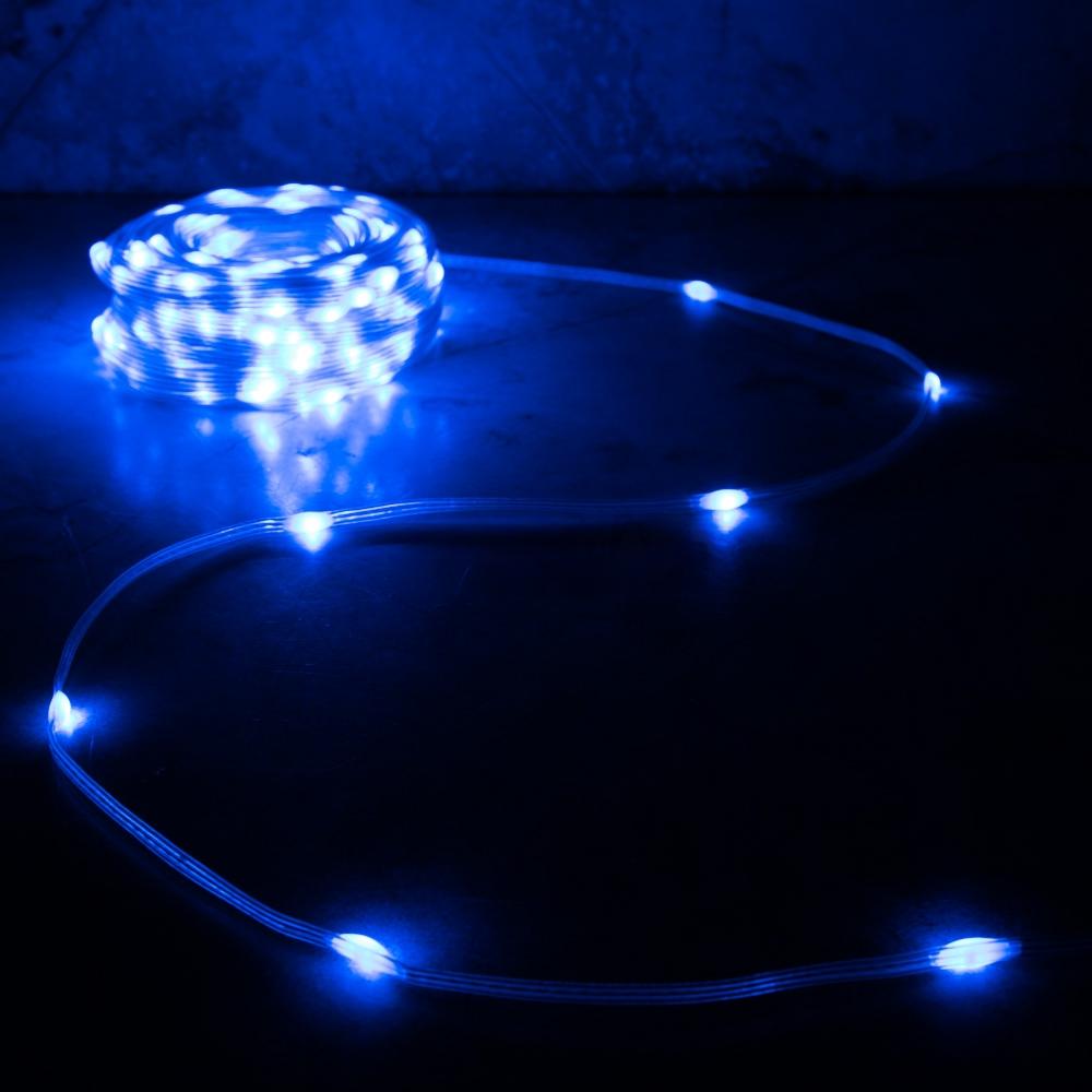 Синий цвет свечения — классика зимнего и вечернего оформления. Он хорошо смотрится на белом, сером и даже тёмном фоне, подчёркивает глубину пространства и вызывает ощущение прохлады и волшебства. Сочетается с белыми, серебристыми, золотыми и фиолетовыми тонами.