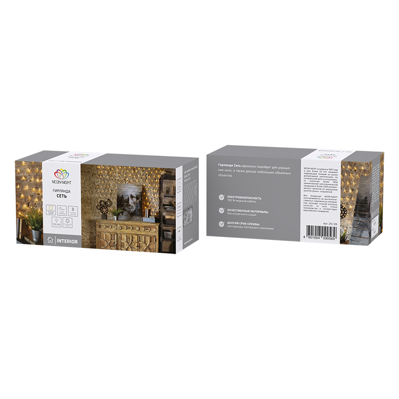 Сетку можно комбинировать с другими гирляндами, создавать многоуровневые композиции или использовать как самостоятельный элемент. Она хорошо смотрится и в одиночку, и в составе больших инсталляций. А после демонтажа компактно сворачивается и хранится до следующего применения.