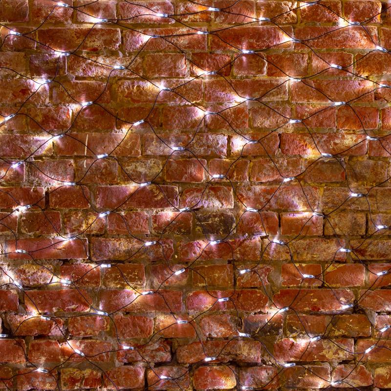 Гирлянда-сетка 2,5×2,5 м с белым динамическим свечением, 432 светодиода, надёжный чёрный ПВХ-провод. Класс защиты IP65, питание от сети 230 В. Подходит для оформления фасадов, заборов, деревьев и входных зон. Работает в 8 режимах. Подключение до 6 сеток в цепи. Серия PROFESSIONAL. Идеальный вариант для новогодних и городских праздников.