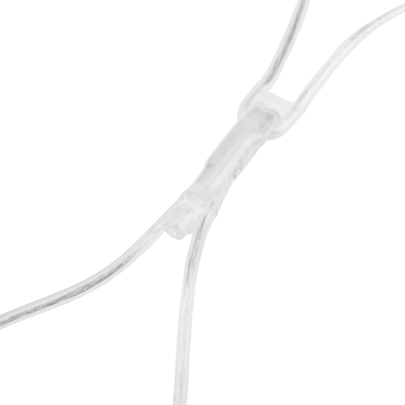 В комплекте уже предусмотрён кабель питания длиной 1,5 м — гирлянда полностью готова к монтажу. Питание — от стандартной розетки 230 В. При необходимости можно соединить до 10 гирлянд в одну линию — это 20 погонных метров и 30 м² светового покрытия.