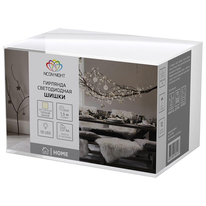 Купить гирлянду «Шишки» 1.5 м, тепло-белый свет, 10 LED, провод прозрачный ПВХ, IP20 в интернет-магазине компании Joyled в Москве.