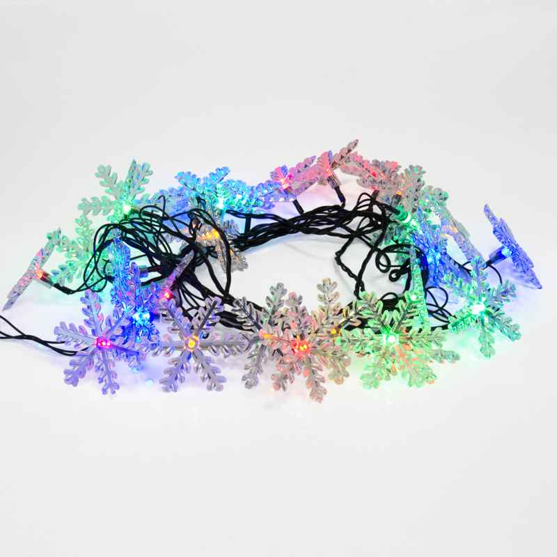 Купить Гирлянда Снежинки 4.4 м, мультиколор свечение с динамикой, 30 LED, провод тёмно-зелёный ПВХ, IP20 в интернет-магазине компании Joyled в Москве.