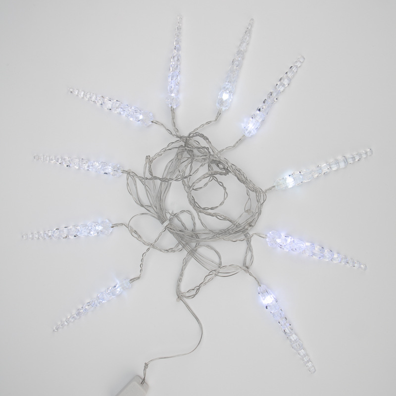 Гирлянда Сосульки 1.5×0.25 м, белый статика, 10 LED, провод прозрачный ПВХ, IP20