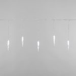 Прозрачный провод делает гирлянду универсальной: её можно разместить на окне, стене, ёлке или декоративной панели — в любом случае провода останутся почти невидимыми. Сосульки «светят сами по себе», создавая визуально чистую световую линию.