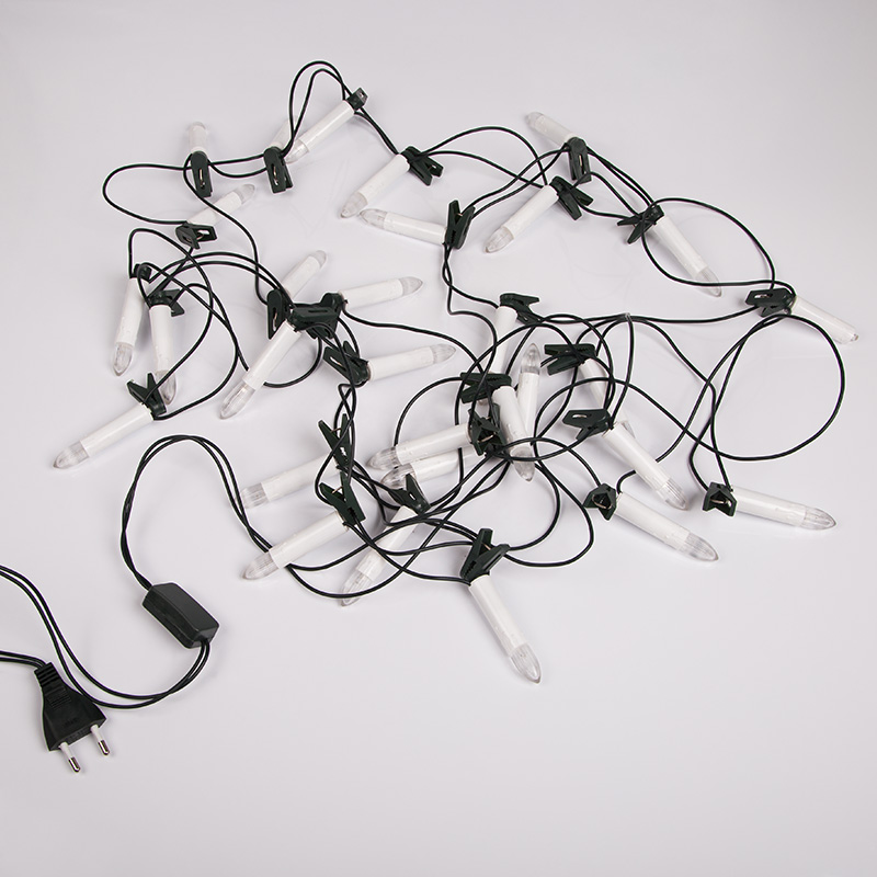 Гирлянда Свечи 6 м, тепло-белый статика, 30 LED, провод тёмно-зелёный ПВХ, IP20