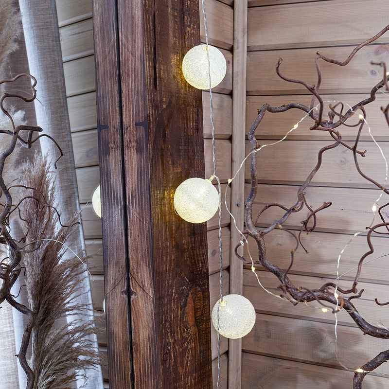 Эта гирлянда создаёт атмосферу мягкого света, тепла и чистоты, добавляя интерьеру уют и праздничность.