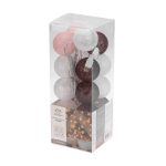 В каждом мини-фонарике встроена LED-лампа с тёплым оттенком. Матовая поверхность плафонов помогает рассеивать свет и избегать бликов. Визуально это выглядит как мягкое «бархатное» сияние — идеальное решение для зон отдыха, вечернего освещения, детских и камерного праздничного декора.