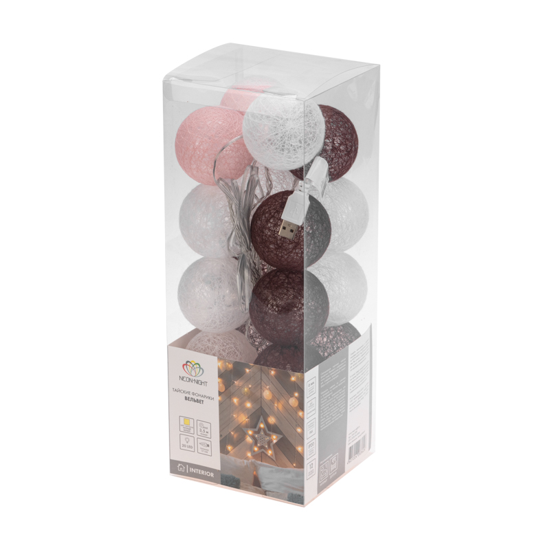 Купить гирлянду «Тайские фонарики Вельвет» 3.5 м, тепло-белый свет, 20 LED, прозрачный ПВХ, IP20 в интернет-магазине компании Joyled в Москве.
