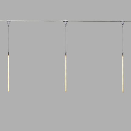 Эффект тающих сосулек создаёт неповторимое ощущение сказки, особенно в затемнённом помещении. Свет «течёт» плавно, мягко и завораживающе, будто капли талого снега скользят вниз по сосульке. Благодаря последовательному включению светодиодов в каждой трубке возникает иллюзия движения — то, что отличает этот тип гирлянд от обычных.