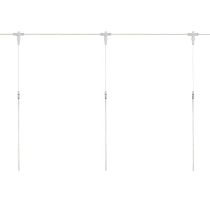 Гирлянда Тающие Сосульки длиной 10 метров — это эффектный и современный способ оформления интерьера к праздникам. Световая композиция состоит из 10 вертикальных трубок по 80 см, каждая из которых содержит 72 ярких белых светодиода, имитирующих стекание света сверху вниз. Общая сумма — 720 LED: гирлянда получается насыщенной, равномерной и визуально динамичной.