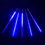 Гирлянда с эффектом тающих сосулек на 5 трубок по 30 см с насыщенным синим свечением. 160 ярких LED, шаг 1 м, питание 24 В, защита IP55. Чёрный провод ПВХ. Подходит для уличного декора деревьев, фасадов, перил, входных групп. В комплекте — блок питания и шнур подключения. Можно соединять до 10 комплектов. Морозостойкая и готова к установке.