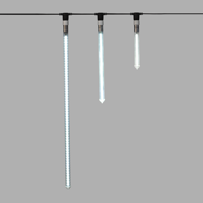 Эта модель — двусторонняя, длиной 30 см, с 48 белыми светодиодами, которые поочерёдно загораются сверху вниз. Свет течёт одновременно с обеих сторон, что даёт насыщенный визуальный эффект, особенно на улицах, в арках и вдоль дорожек. С такой сосулькой объект будет заметен даже с большого расстояния.