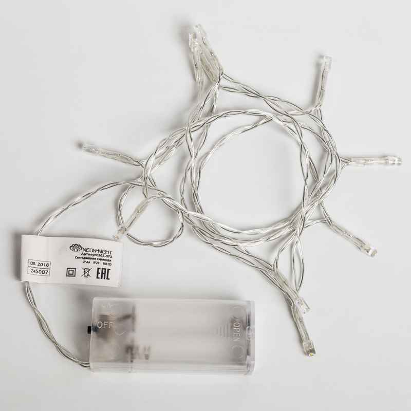Гирлянда Универсальная 1.2 м, тепло-белый свет, 10 LED, провод прозрачный ПВХ, IP20