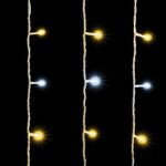 Оттенок шампань ассоциируется с теплом, уютом и элегантностью. В сочетании с белым мерцанием он создаёт эффект лёгкой искристости, идеально подходящий для зимних праздников и романтических вечеров. Свет равномерно распределяется по всей длине занавеса, а мерцающие точки добавляют глубину и объём световой композиции.