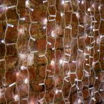 Профессиональная уличная гирлянда-занавес 2×1,5 м с чисто-белым светом и мягким мерцанием. 300 LED, IP65, белый ПВХ-провод, соединение до 4 шт., монтаж в Москве и МО.