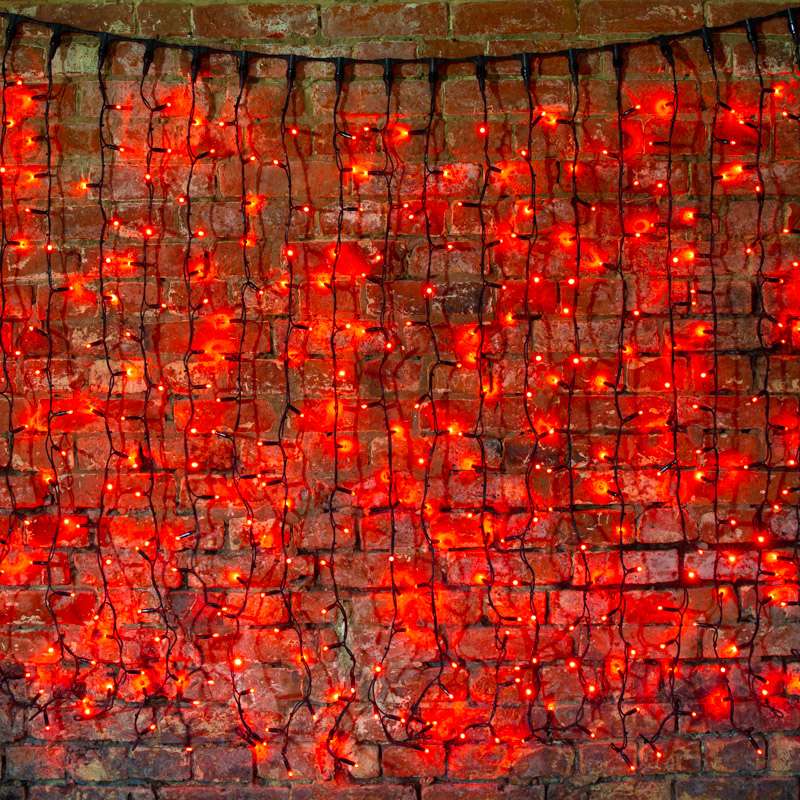 Профессиональная гирлянда-занавес 2×1,5 м с ярким красным свечением. 360 LED, чёрный каучук, IP67, работа от –50°C до +40°C. Соединение до 6 шт., надёжна в любых погодных условиях.