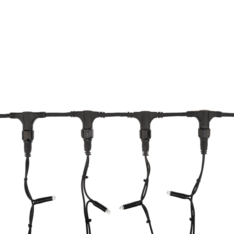 Гирлянда оснащена системой последовательного соединения — до 6 изделий в одной линии, что позволяет оформлять протяжённые фасады и большие площади без лишних соединительных кабелей. Это упрощает монтаж и снижает затраты на дополнительные аксессуары.