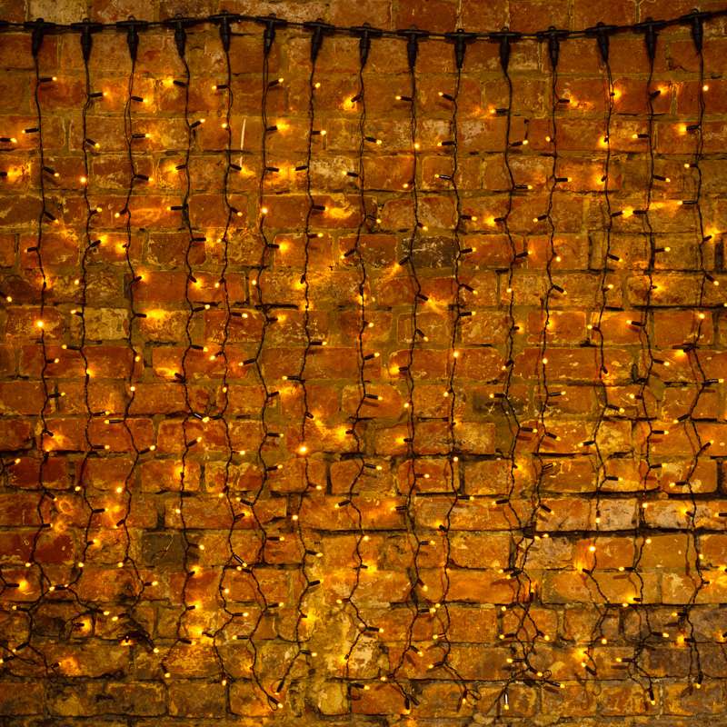 Жёлтый занавес выглядит ярко и статусно, придавая объекту праздничный облик. Он уместен как в частных интерьерах, так и в городской среде. Светодиоды равномерно распределены, что создаёт плотную световую поверхность без провалов.