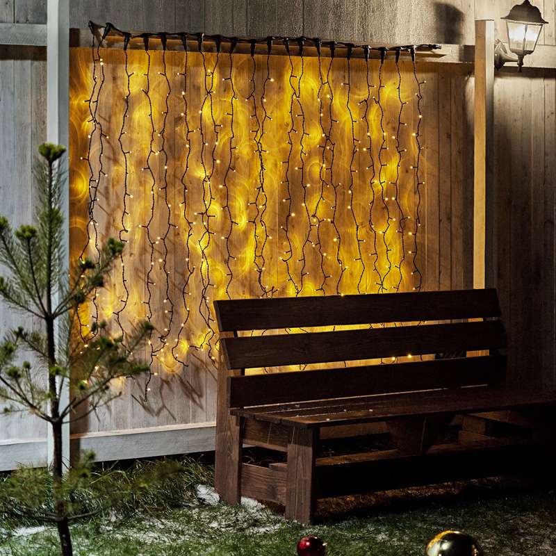 Жёлтый свет гирлянды-занавеса — это эффектное решение для тех, кто хочет подчеркнуть праздничную атмосферу и добавить яркости в архитектуру. В отличие от тёплого белого, который создаёт уют, жёлтый оттенок выглядит более энергичным и заметным. Он привлекает внимание, формирует солнечное настроение даже в зимние вечера и идеально подходит для городских украшений, корпоративных мероприятий и частных домов, где важен акцент на фасаде.
